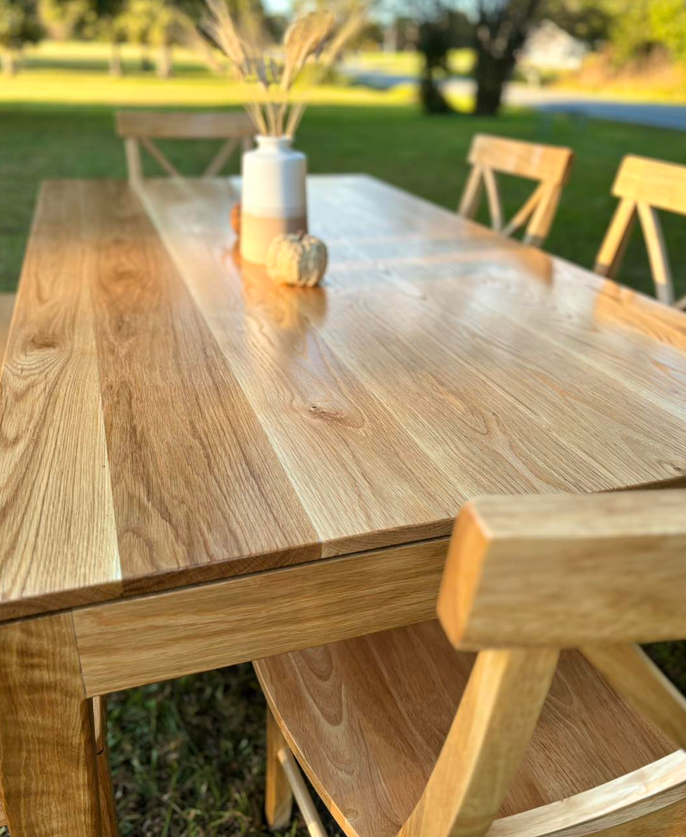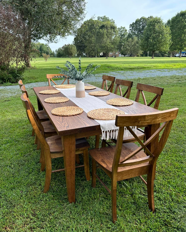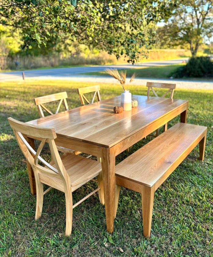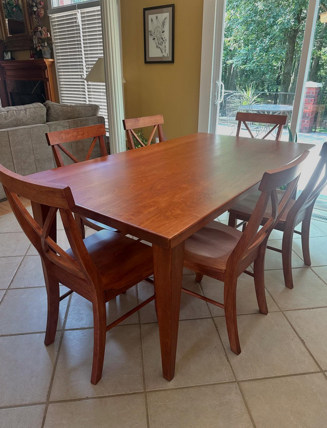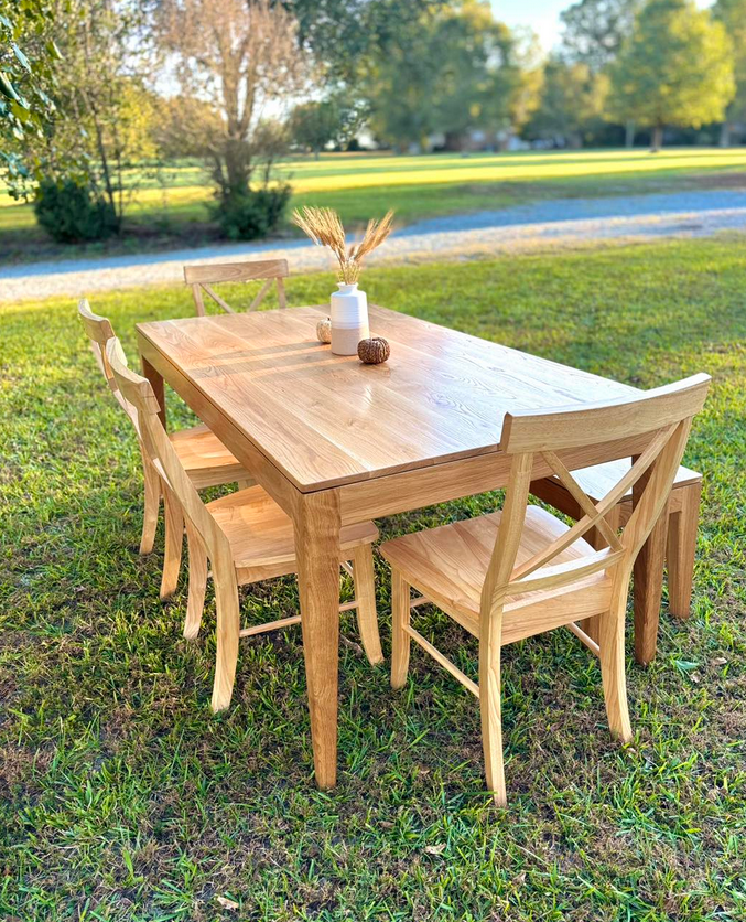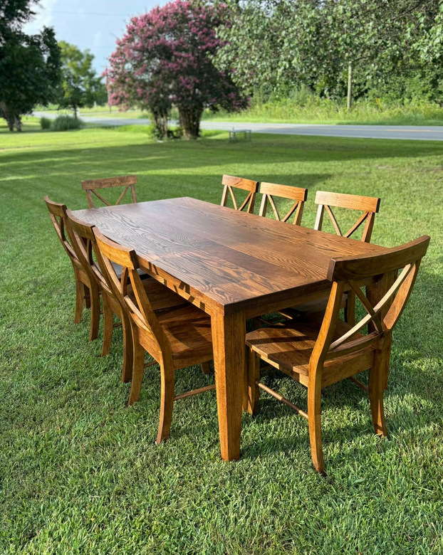 Meet the Alamance, named for Alamance County, NC. This is a very simple design with a timeless charm! Made by hand right here in Wingate, each dining table is crafted from solid hardwood and finished with care for everyday use and lasting beauty. Custom sizes, stains, and finishes available.