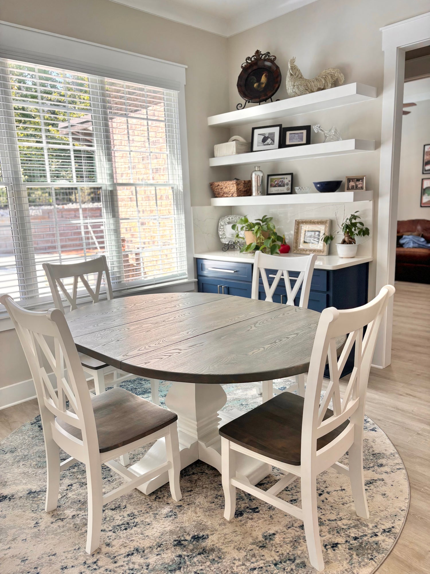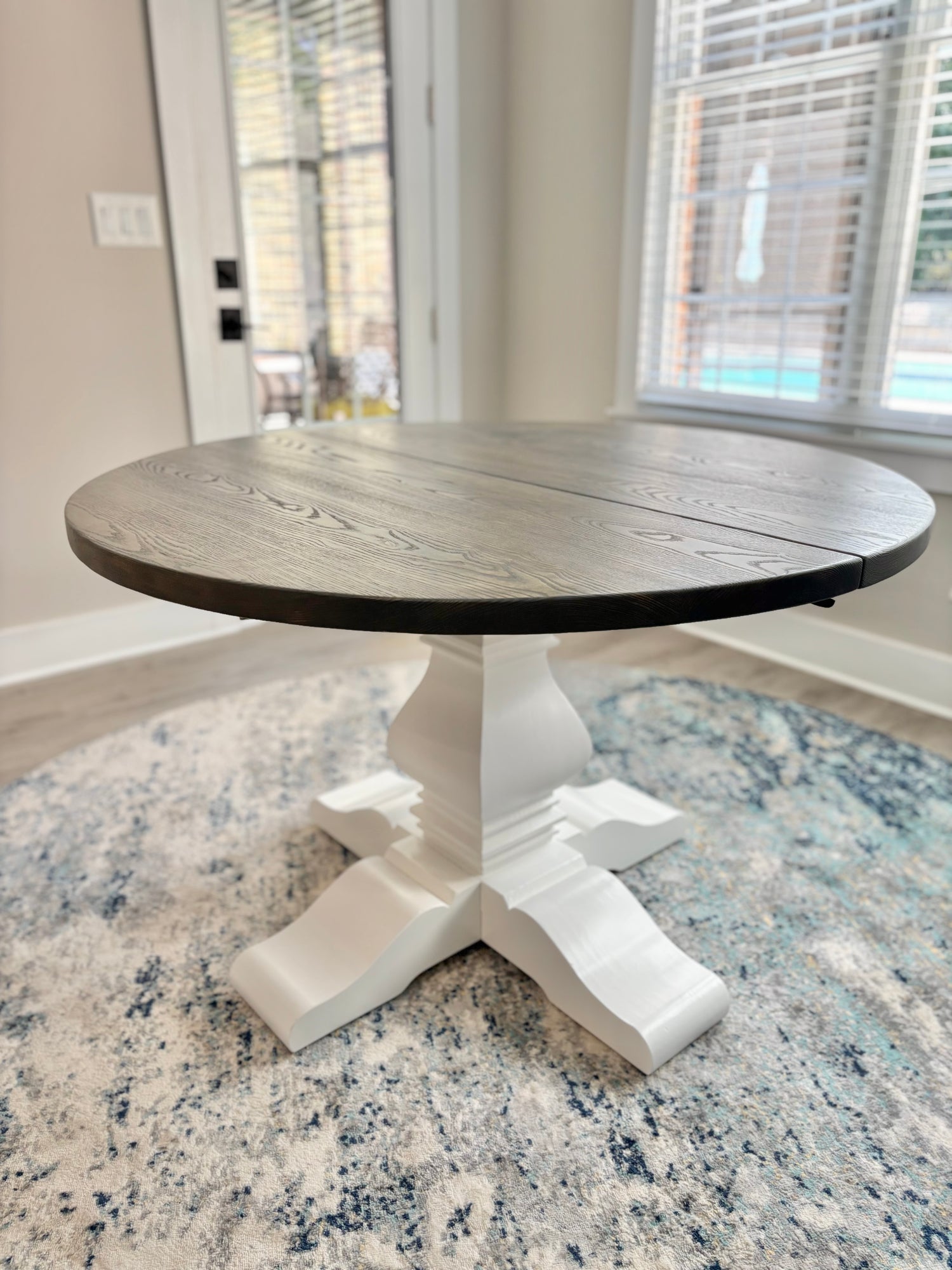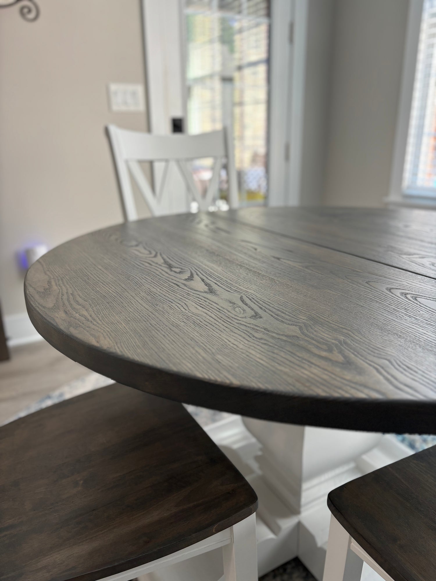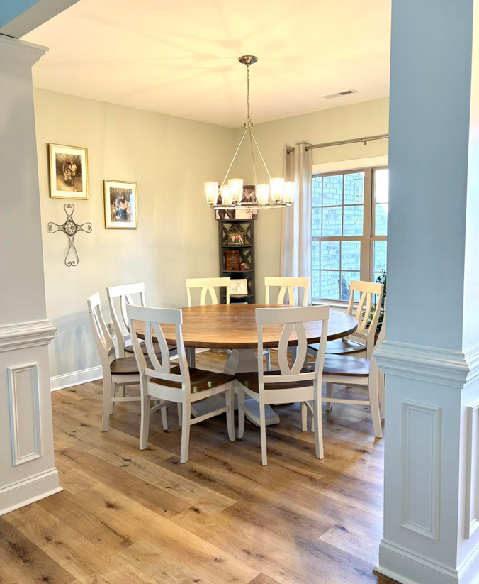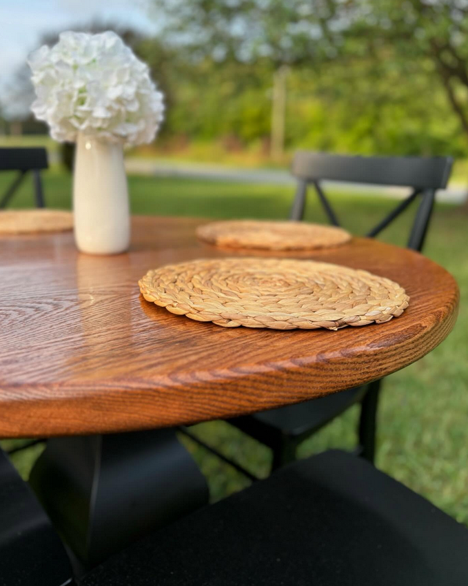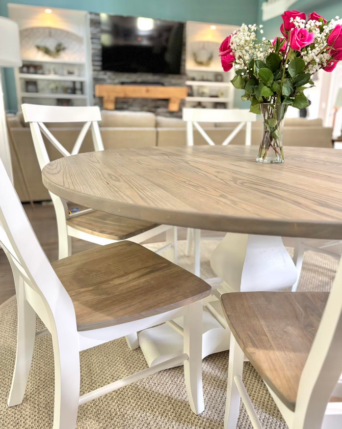 Meet the Cabarrus, named for Cabarrus County, NC. By far our best selling round table style! The Cabarrus is a fan favorite that never disappoints. We've delivered this to homes made in the 1920s and homes made in 2025! It just fits! Made by hand right here in Wingate, each dining table is crafted from solid hardwood and finished with care for everyday use and lasting beauty. Custom sizes, stains, and finishes available.